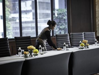 Заказали на выезде забрать багаж сотрудник так и не пришел пришлось самим все спускать на рецепции тупо извинились и сказали что мало сотрудников ,но при этом на входе стоят несколько девушек и тупо открывают дверь это конечно приятно ,но по мне лучше пользы было от мужчин