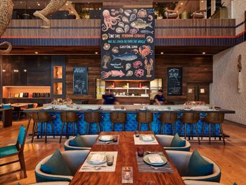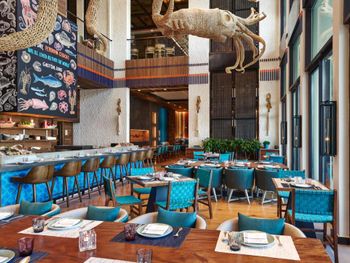 В отеле работают 5 ресторанов, где подаются блюда интернациональной и местной кухни, от икры до стейков. Кроме того, в распоряжении гостей 2 бара, где можно заказать шампанское и традиционный французский шоколад.
