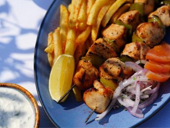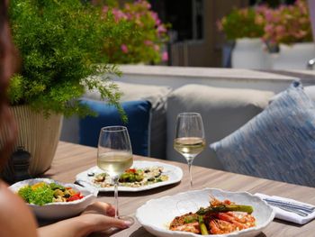 Отвратительная еда у бассейна, цены на блюда очень дорогие. Бар у бассейна начинает работать в 11:30, поэтому любой алкоголь вам не нальют, кружка разливного пива стоит 12 евро, бокал вина от 15 евро. При отеле два ресторана греческий и морепродукты, таких цен на блюда я не видела даже в Швейцарии, лучше брать такси и ездить в торговые центры, а там кушать в ресторанах.
