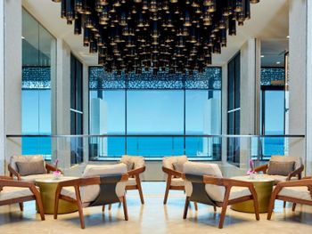 При входе чувствуешь что ты попал в прекрасный отель с современным дизайном, интерьер великолепный. На стойке ресепшена есть даже русскоговорящие менеджеры. Мне попался англоговорящий Тендай , не смотря на мой плохой Английский мы поняли друг друга . Он любезно все подробно рассказал, все услуги предложил ( в других отелях не так), и сделали мне скидку на услуги. Персонал во всем отеле дружелюбный, услужливый, все улыбаются, чувствуешь что тебе тут рады. Номер большой чистый . В отеле везде чистота. Кровать удобная, подушки двух типов мягкая и чуть плотнее. В ванной крем, шампунь, кондиционер в больших дозаторах, приятно пахнет. В отеле и номере температура комфортная, в других мерзла. Завтраки , и ужины вкусные, очень большой выбор ( особенно мяса) . Даже десерты вкусные. На ужине имеется мороженое. Пляж чистый, шезлонгов хватает. И это единственный ( из посещенных мною )где я чувствовала себя на море, вода прозрачная ( у других мутная). На пляже разносят воду ,сок. После поехала в Хилтон на перле и Шератон , сравнить ( и очень пожалела что уехала от сюда) и теперь точно могу сказать что это лучший отель ! В Хилтоне это не про пляж и море, завтраки намного меньше блюд. Да и персонал рылся в моем чемодане( застала). А в Шератоне мерзну, не вкусно, шумно, персонал не приветлив.