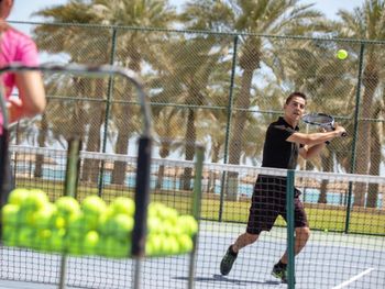 Территория большая, два теннисных корта, корт для игры в падел. Завтрак отличный, персонал дружелюбный на все вопросы чётко отвечают.