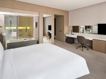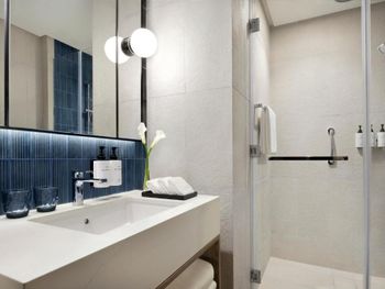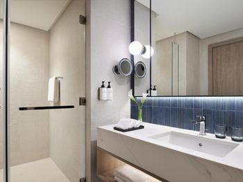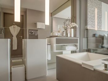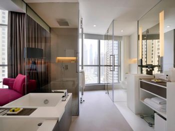 Бронировали клубный номер и посещения бизнес лаунджа,с кроватью king-size, на самом деле кровать не большая, условия о стирке и глажке двух вещей указанных в описании этого номера оказались не достоверными, на ресепшн сказали это букинг мало ли что написали, в результате стирку глажку оплачивали. Два дня просили заменить грязные халаты принесли через три дня. Для тех кто хочет позагорать в бассейне, этот отель совершенно не подходит, уже в 12.00 солнца на бассейне нет, его закрывает башня рядом стоящая, поэтому огорчена что хотелось позагорать а солнца нет. Для такого уровня отеля цена слишком завышена и качество этого отеля. Второй раз не приедем, наши ожидания с мужем от отеля разочаровали.