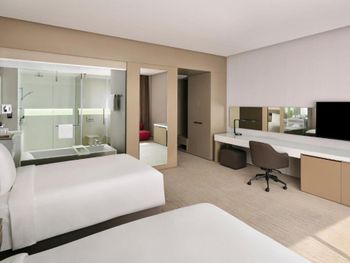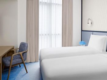Мы попросили номер с видом на пристань, доплатили ещё 15 тысяч, в итоге заселились, все окна грязные, сантиметровый слой пыли, ни разу их не мыли, так что вид был только с маленького балкончика. номер очень маленький, половину номера занимает давно убитая кухня, туалет крошечный, свет такой, что ничего не видно, везде стоит продукция Byredo, но в бутылочки налито обычное средство, это легко можно понять, если вы хоть раз пользовались их гелем или кремом, шампунь и гель для душа разлит из одной канистры. обувной ложки нет, адаптер для розетки несли целый час и просить пришлось раз 5. мини бара нет, из холодильника воняет. вода разлита непонятно откуда в больших бутылках, а не в маленьких как это принято. До пляжа идти 20 минут по шумной трассе. Скорее всего раньше это были апартаменты и потом их переделали в отель, все очень низкого качества, это не 5 заезд, а 3 звезды. 3 ночи стоили около 100 тыс с налогами, мы отменили 2 оставшихся и переехали в doubletree, у них номер 88 кв. и Отель с басейном на первой линим у моря, обошелся нам в 50 за 2 ночи