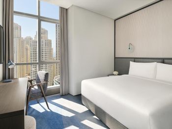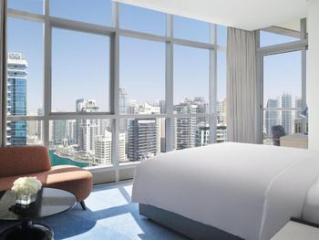 Отель InterContinental Dubai Marina с живописным видом на гавань расположен в самом центре района Дубай-Марина. К услугам гостей открытый бассейн, а также 6 ресторанов и баров. Из нашего отеля открывается потрясающий вид на набережную. Совсем рядом расположены пляж Джумейра, Дубайский трамвай и выставочный комплекс «Экспо-Сити Дубай». Это идеальное место для фестиваля Gulfood 2026, выставки Arab Health и других крупных мероприятий. Гостей ждут пятничные бранчи, тематические вечерние обеды, напитка в баре на крыше, бассейн, спа-центр, студия пилатеса и современные конференц-залы в самом центре района Дубай Марина. В распоряжении гостей 328 номеров, люксов и резиденций, в которых современное оформление отлично сочетается с оригинальной архитектурой. В числе удобств — 40-дюймовый смарт-телевизор с плоским экраном, бесплатный Wi-Fi и рабочий стол. Гости также могут воспользоваться принадлежностями для чая/кофе. Ресторан Accents наполнен ароматами и вкусами со всего мира. Для вечернего отдыха в отеле обустроен лаундж Urban Shisha. Любителям джина стоит посетить уютный бар Ginter. Белые стены, мебель в стиле ретро, мягкая музыка и захватывающий вид на гавань — идеальное место для встреч с друзьями и отдыха. В зимний период бар Rex на крыше привносит в атмосферу района Дубай Марина дух настоящей Италии. В спа-центре с 6 процедурными кабинетами предлагается широкий спектр различных видов массажа разной интенсивности. Гости могут позаниматься спортом в фитнес-центре или поплавать в открытом бассейне. Кроме того, гости отеля могут посещать 3 особых заведения-партнера — PAPAS, аутентичный итальянский ресторан и клуб-ресторан с живыми выступлениями The Groove House. Перед отелем InterContinental Dubai Marina на набережной Дубай-Марина работает торговый центр Dubai Marina. Расстояние до торгового центра Mall of the Emirates составляет 10 км. Поездка на автомобиле до аквапарка Aquaventure занимает 20 минут.