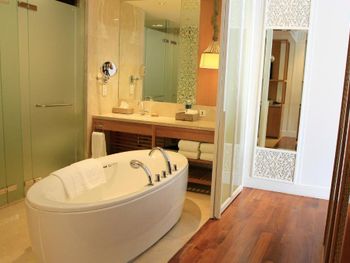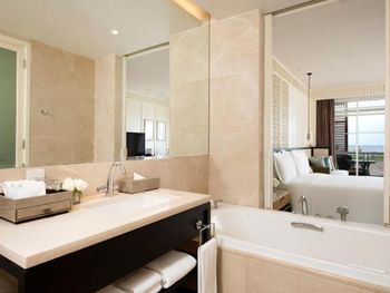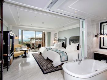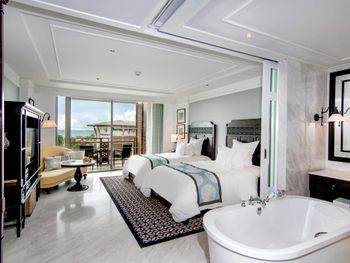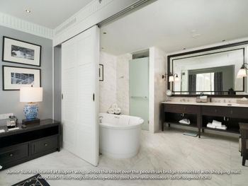 Весьма хороший отель. Многое понравилось. Жили в люксе на первой береговой линии, но обратили внимание на то, что обычные номера расположены через дорогу, что явно неудобно для тех, кто в них останавливается. Хороший in-room-dining 24 часа в сутки. Вкусно и большой выбор. Хорошие рестораны на территории ( два). Выход прямо в большой супермаркет через упомянутый корпус. Очень удобно.