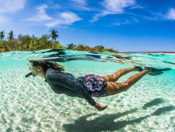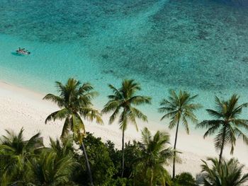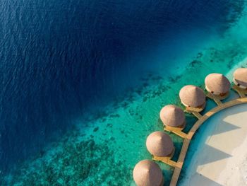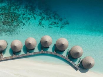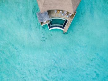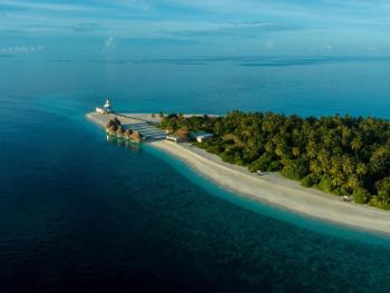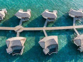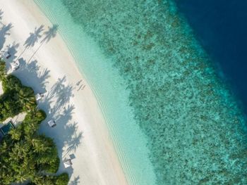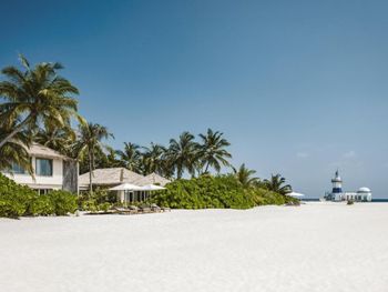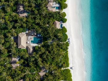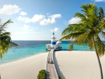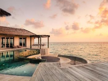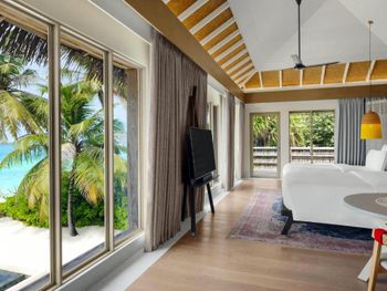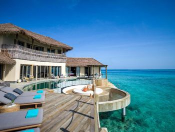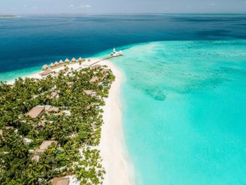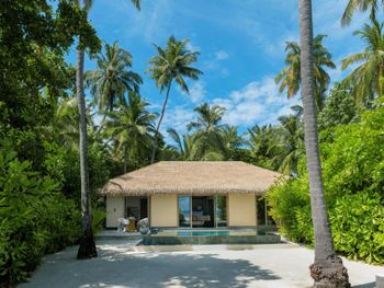 Остров очень маленький на острове по факту только 1 пляж для купания, напротив главного ресторана. Купаться прямо с водной виллы нельзя, пляж напротив вилл на пляже каменистый. Водные виллы стоят не на воде, а на каменной насыпи, и прямого доступа к морю нет Экскурсии делают на небольших лодках, что менее комфортно (может укачать) Рифа как такового нет, поэтому волны шумно бьют в каменный берег водной виллы. Хотя часто на Мальдивских островах риф создает уютную тихую лагуну без волн Корралов почти нет, много камней, хотя рыба и живность есть, иногда даже дельфины приплывают (из-за отсутствия рифа)