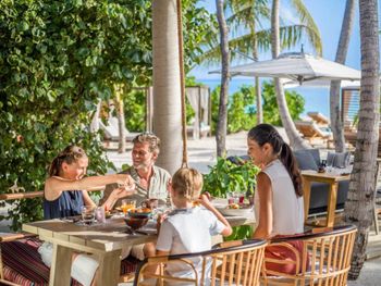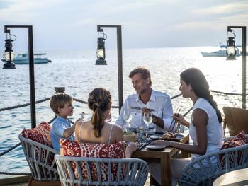 В отеле есть пять ресторанов, где вы сможете оценить задумки наших поваров и отправить ваши вкусовые рецепторы в кулинарное путешествие. От средиземноморских тапас на 360-градусном обзоре в The Lighthouse до южноазиатских обедов в The Fish Market и слияния межконтинентальных вкусов в Café Umi — вас ждут органические, местные и экологически чистые ингредиентов в тщательно продуманном интерьере. Если вы хотите отведать творчески приготовленные коктейли, вас ждет романтический бар The Sunset или The Retreat, анклав только для взрослых с видом на глубокую голубую лагуну. Для большей персонализации Dining by Design предлагает гостям стимулировать свои чувства во время круиза на закате, насладиться изысканным пикником или оставить воспоминания на всю жизнь, просмотрев кино под звездами.