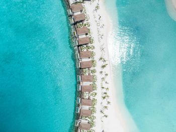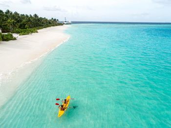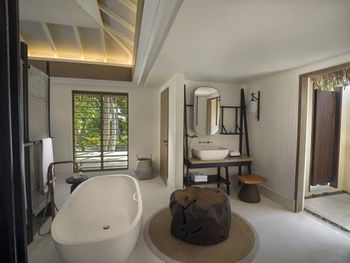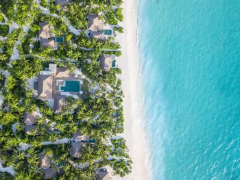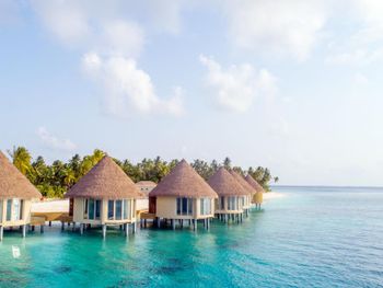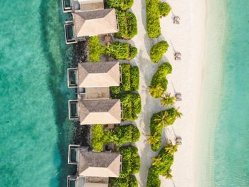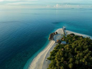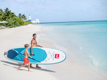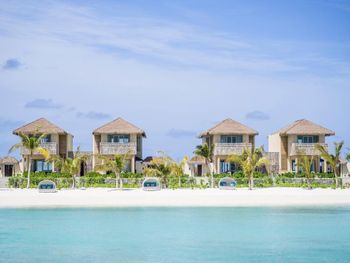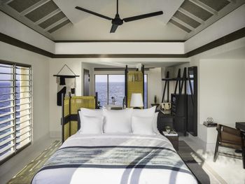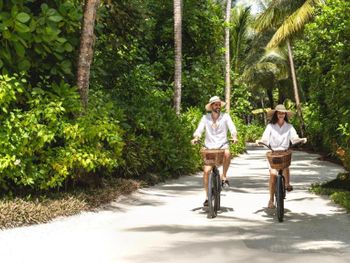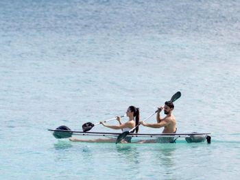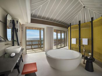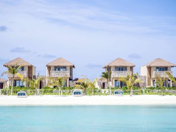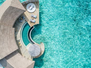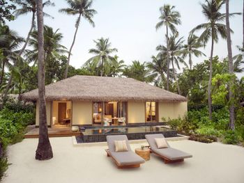 Остров очень маленький на острове по факту только 1 пляж для купания, напротив главного ресторана. Купаться прямо с водной виллы нельзя, пляж напротив вилл на пляже каменистый. Водные виллы стоят не на воде, а на каменной насыпи, и прямого доступа к морю нет Экскурсии делают на небольших лодках, что менее комфортно (может укачать) Рифа как такового нет, поэтому волны шумно бьют в каменный берег водной виллы. Хотя часто на Мальдивских островах риф создает уютную тихую лагуну без волн Корралов почти нет, много камней, хотя рыба и живность есть, иногда даже дельфины приплывают (из-за отсутствия рифа)