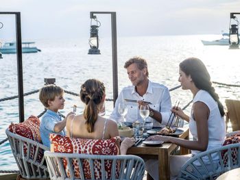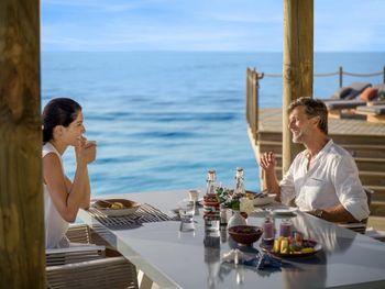 В отеле есть пять ресторанов, где вы сможете оценить задумки наших поваров и отправить ваши вкусовые рецепторы в кулинарное путешествие. От средиземноморских тапас на 360-градусном обзоре в The Lighthouse до южноазиатских обедов в The Fish Market и слияния межконтинентальных вкусов в Café Umi — вас ждут органические, местные и экологически чистые ингредиентов в тщательно продуманном интерьере. Если вы хотите отведать творчески приготовленные коктейли, вас ждет романтический бар The Sunset или The Retreat, анклав только для взрослых с видом на глубокую голубую лагуну. Для большей персонализации Dining by Design предлагает гостям стимулировать свои чувства во время круиза на закате, насладиться изысканным пикником или оставить воспоминания на всю жизнь, просмотрев кино под звездами.