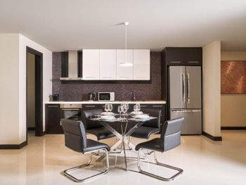 Отличное расположение для продолжительного проживания, т.к. рядом много кафе, несколько ТЦ, и в одном из них огромный продуктовый магазин Lotte Mart Nha Trang Gold Coast. Для кухни нам, также, принесли всё по списку, - много еды готовили сами.
