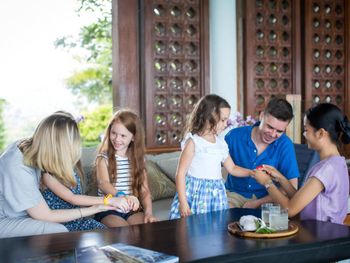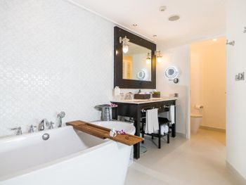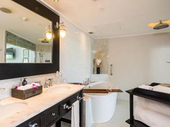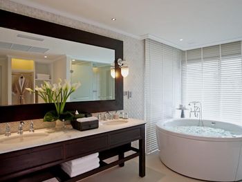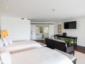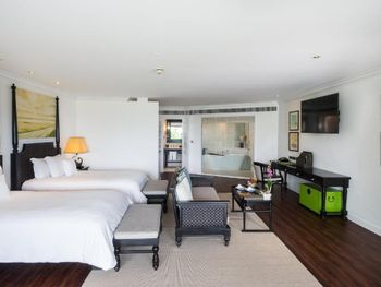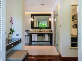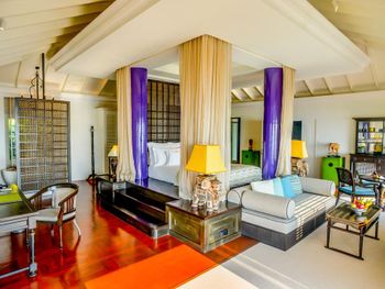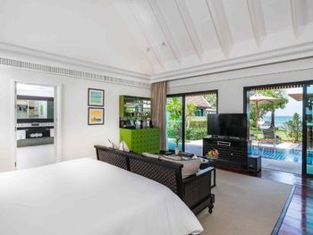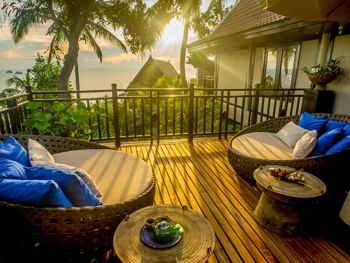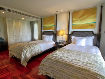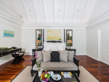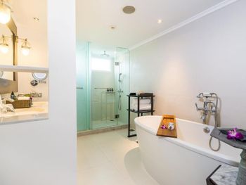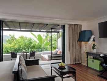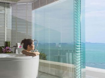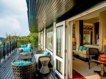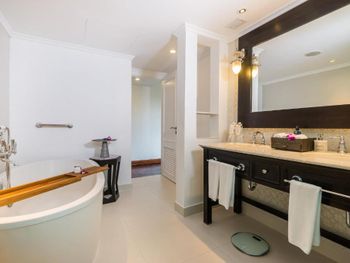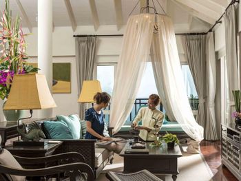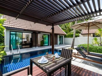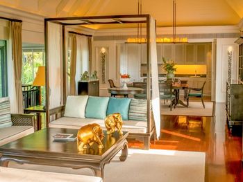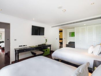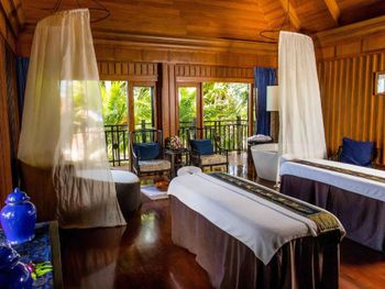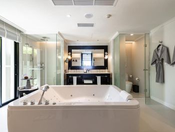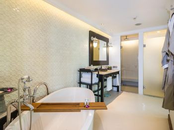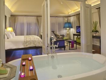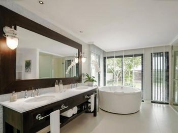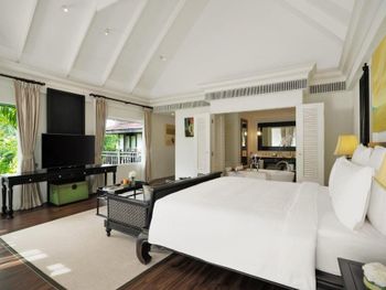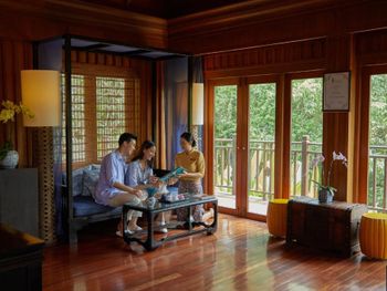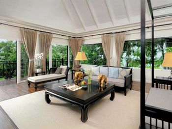 Beautiful Thai architecture and spacious outdoor balcony or patios feature in all the air-conditioned rooms and villas. All come equipped with a flat-screen TV, DVD player and a day bed. Some villas have a private pool. En suite bathrooms have separate bathtub and shower facilities.