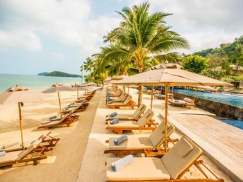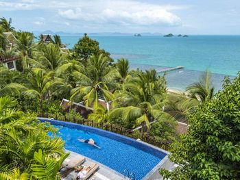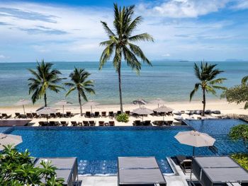 Located right on the beach, this beachfront resort is situated in the peaceful west coast of Taling Ngam. Set within 22 acres of coconut plantations, the luxurious InterContinental Koh Samui Resort descends from the cliffs to the white sandy shores of western Koh Samui. Boasting 6 main swimming pools, it has a cliff-top Thai spa and free WiFi.