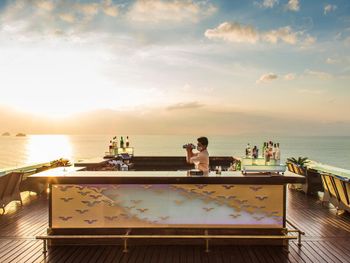 Amber and Flames restaurants serve international and Thai dishes. Drinks can be enjoyed in the stylish Air Bar. The resort's lobby café & bar, Serene Lounge, offers afternoon teas and coffees imported from all over the world.
