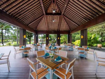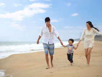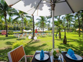 Брали полупансион, только по факту узнали, что ужин - это один сет на всю семья, каждый день одинаковый, и только китайская кухня. Спасибо сотрудникам отеля, которые поменяли ресторан на западный и дали лимит по тратам на ужин. На наш взгляд, отель не очень подходит для отдыха с детьми, если интересует купание в море. В этом заливе купаться вообще нельзя: большие волны и подводные течения, везде стоят знаки, рассказывающие о запретах и фактах, когда люди утонули. На территории есть бассейны, анимация и детский клуб, но быть на море и не купаться на море - странное сочетание :-)