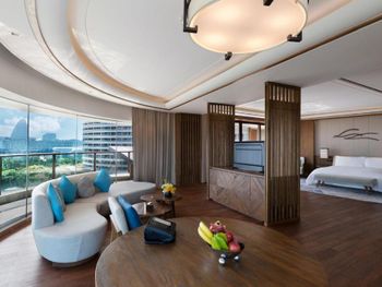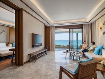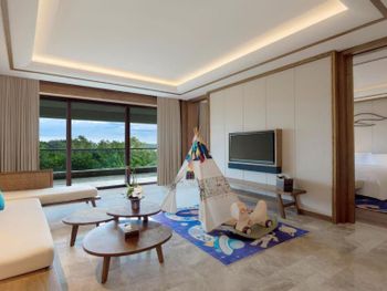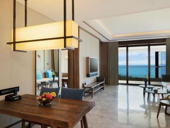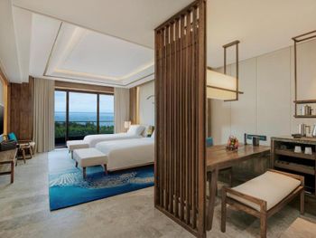 Красивая зеленая территория отеля, персонал и сервис, завтраки. Однозначно стоит попробовать ужин в морском ресторане. На 2 взрослых и 2 детей ( 6,13 лет ) ужин обошелся примерно в 1400-1500 юаней. Кажется, что дорого только до момента, когда попадаешь в ресторан. Живая музыка, подводный мир ( рыбы, скаты, черепахи ), шоу русалок. А самое главное - кухня! Куча морепродуктов, все очень качественное. Однозначно советую!