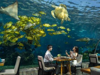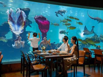Ресторан-океанариум Aqua исследует тайны морского дна, отведает изысканные деликатесы, наблюдает за бродящими более чем 5000 разноцветными тропическими рыбами и сказочными шоу русалок. Романтические и уникальные впечатления очень нравятся парам и семейным гостям.