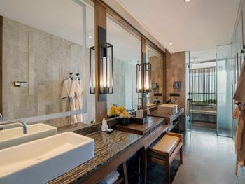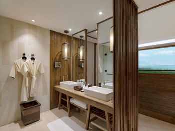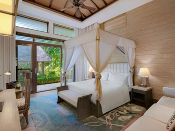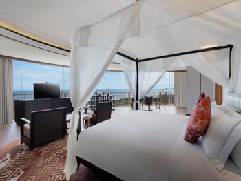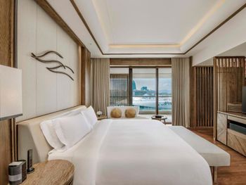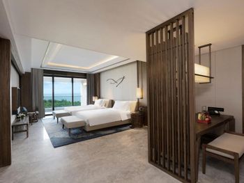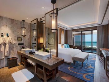 Отель отличается современным дизайном с элементами хайнаньского стиля и пышным ландшафтом. Комплекс имеет форму дракона, отдыхающего на пляже, и занимает площадь 150 000 квадратных метров. Все 295 номеров имеют привлекательный дизайн открытой планировки с видом на лазурные голубые воды Южно-Китайского моря. Номера площадью от 88 кв. м оформлены с использованием тропических произведений искусства. Они имеют просторные главные спальни и собственные открытые балконы с ваннами, с которых открывается потрясающий вид на океан.