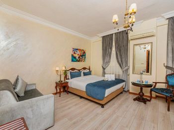 Отель предлагает на завтрак 2 горячих блюда, яйца, овощные, мясные и сырные нарезки, есть немного выпечки. Без особых изысков, но голодными точно не останетесь, блюда примерно через день меняются. Очень комфортные матрасы, что для меня очень важно. Хорошая уборка. В номере есть чайник, холодильник, сейф. Главный плюс - расположение отеля: в пешей доступности все основные достопримечательности, парк Гюльхане, пристань Эминеню. Очень доброжелательный персонал, некоторые ребята говорят по-русски. Всегда готовы помочь, сориентировать, как куда добраться, помогут вызвать такси или организовать трансфер. Отель подходит для спокойного отдыха, понравился контингент отдыхающих.