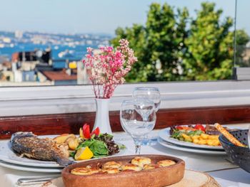 По утрам в ресторане Payitaht сервируется завтрак «шведский стол» с домашними джемами, выпечкой и разнообразными свежими, экологически чистыми сезонными овощами и фруктами. Гости могут заказать традиционные блюда по меню. С террасы ресторана на 7 этаже, где подают блюда турецкой и интернациональной кухни, можно полюбоваться видом на пролив Босфор.