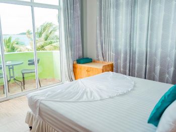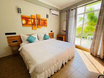 В санузле жарко, не хватает принудительной вытяжки. Перед отелем поодаль стоит экскаватор и немного портит вид на море с балкона. Бикини-остров не доступен, мостки сломаны, рядом мусорная свалка дымит. Пользовались пляжем доя местных жителей. Местные не ходят купаться, только туристы. Очень уютно в гамаках или на лежаках в тени деревьев. Заход на пляже песчаный, можно босиком гулять по лагуне, на Расду ранили ноги даже в тапках. Береговая линия чистая, на Расду очень много битого стекла.