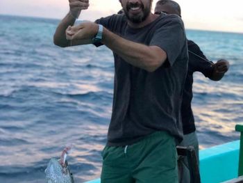 Очень приветливые люди работают, чувствуется постоянная забота о жильцах. Нам организовали выездной снорклинг, домашний риф далеко от берега, но есть немного рыбок в лагуне у пляжа. По нашей просьбе организовали рыбу на гриле, очень вкусно. В первый вечер за ручку отвели в недорогой местный ресторанчик. Отель новенький, все чистенько, в доме ходят босиком. Завтрак одинаковый, без изысков, омлет, сосиска, тост, кофе и красивый напиток. Фрукты - апельсин и яблоко. Воду питьевую выдают по надобности. Остров не крупнее, чем Расду, на котором мы были до Гурайдо, но он более живой, больше магазинов и кафе, лучше ассортимент сувениров. Очень жаль было уезжать и есть желание вернуться. По дороге на пляж очень много красивых мест для фото. Завораживающий закат, на который приходят любоваться местные жители.