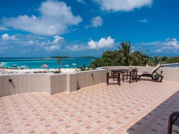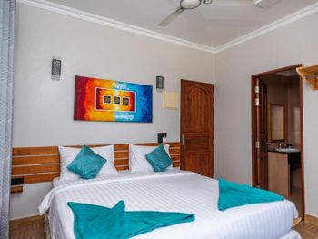 В аэропорту не сразу встретили, час прошёл, потом ждали часа полтора ещё одного пассажира. На обратном пути управляющий отеля сказал что лодка будет стоить 120$, так как лодка пустая и только для нас, но если поедет ещё кто то тогда дешевле, в итоге ехало 6 человек, отдали 100$. Завтрак никакой, все 13 дней-омлет из одного яйца, тост, сосиска одна (не из мяса) масло и джем по 1 шт (самолетные упаковки), яблоко и апельсин, по одному на 2 персоны, чай или кофе, вместо сока Юппи. Пляжа где можно купаться в купальнике нет, вернее он есть, но купаться там не получится, потому что - лодки, мелко( по колено), водоросли.Ходили купаться в неположенном месте, пару дней прокатило потом прибежал местный с тёткой и сказал что пойдет жаловаться в полицию если не уйдем. Кафе на острове 2, и то через неделю одна закрылась. Меню скудное, но голодным не останешься, сок сильно разбавляют водой, чек примерно 20$ на двоих. Я думаю что такой сервис из за отсутствия туристов, а может и наоборот. Так как идёт стройка отель стоит не у моря, там уже насыпали метров 150.Кровать в номере составлена из 2, но это не беда, плохо что обе кровати все время разъезжаются.