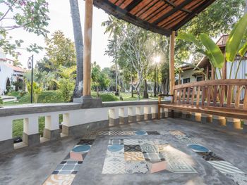 Самая изюминка отеля это его цветущая территория утопающая в цветах и зелени, запахи цветов просто голову сносят, красивый бассейн в форме гитары. По ночам тишина аж лягушек и кузнечиков слыхать.До пляжа 120 метров пешком, пляж хороший, на пляже кафе с вай фаем учень удобно. Рускоговорящий сотрудник на рецепшене очень помогал в решении разных вопросах связаных с заменой номера и заменой батареек в сейфе да и по другим мелким вопросам. В баре работают замечательные сотрудники всегда можно подойти попросить открыть бутылочку вина и взять ведерко со льдом.