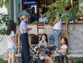Отвратительный кофе из пакетиков, ожидали что будет свежесваренный или хотя бы зерновой из кофемашины, попробовав раз на завтраке кофе больше его не брали. Чай тоже из пакетиков, но их не было отдельно, а был кувшин где несколько пакетиков чая залили водой и все...Вкус соответственно никакой. У отеля нет своих лежаков на пляже. Обеды и ужины в ресторане вкусные, но порции маленькие и дороже чем в округе. Измените хотя бы порции за эти деньги.