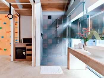 Это самый неудобный номер, в котором мы когда-либо были. Нет шкафа, в номере нет стола, стула (но в середине отдыха всё так, принесли. Спасибо). Жудко неудобный умывальник! Туалет и душевая с практически прозрачным стеклом и бонусом, напротив огромное зеркало, через которое абсолютно всё видно. Останавливаться семье с детьми-не вариант. Очень скользкий и холодный пол. Нет щёток и паст, что странно для 5*.Отвратительное обслуживание в ресторане, никто не реагирует на просьбы, блюда готовят по часу. Выбор блюд в меню на 3- На завтрак, около кофе машины, можно успеть постареть. На баре в бассейне, отношение, будто Вы пришли ночью к ним домой и что-то хотите. Коктейли не вкусные от слова, совсем. Лёд добавляется в них с горой, на которую осталось только сесть. Очень жаль, что отсутствует детская комната. Территорию, только приводят в порядок. Около бассейнов нет душевых и зонтиков. На верхнем бассейне, даже нет полотенец! Пляж «не купабельный», шезлонгов недостаточно. В отеле дольше 7 дней-делать нечего.