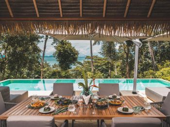 Не понравилась встреча,прибыли на пристань, а там никого, багаж тащили сами. Прибыв на ресепшн, поразились, что очень грязно, кругом листва пожухлая неухоженная территория. Пляж грязный, не убираются вообще. В ресторане обслуживание отвратительное. Заказать нечего, половина блюд просто не было, оставшаяся часть за бешеные деньги. При этих ценах качество еды ниже среднего. Пришли на виллу, не работал кондиционер(((полвечера его ремонтировали, потом переселяли в др номер. В это время погас свет во всем отеле, часа на 3.в итоге в жаре и с комарами легли спать((( А утром увидели завтрак, не соответствует 5 звездам абсолютно! В итоге, не дожив свой срок в отеле, бежали, запросив возврат денег! Для такой цены отель УЖАСЕН!