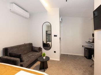 На этой улице каждое второе здание- миниотель, выбор гигантский, но я понимал что будут проблемы с парковкой, поэтому поставил соответствующую сортировку. В описании у этого отеля указана «своя частная парковка». Я решил заплатить больше и жить на пару метров дальше от центра именно из-за этого. На деле - нихрена. Все забито, машину поставить негде, пришлось крутиться по кварталу, и по итогу ставить машину на платную парковку где тебя ещё разведут и обманут. Знал бы все заранее, заказал бы апартаменты ближе к достопримечательностям за меньшие деньги и поставил бы машину на ISPARK у голубой мечети всего за 3 евро/день. Маленькие номера, даже стандарт Все шатается и держится на соплях Телевизор не работает, есть пульт только от приставки, от самого тв нету, поэтому если сбилось все, то ты его не переключишь на просмотр каналов с приставки. Кнопки на корпусе тв не работают.