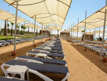 Отель не новый, но все есть. Просторный чистый номер с большим балконом, очень комфортные кровати, малышу предоставили детскую кроватку-манеж, в минибаре безалкогольные напитки в стекле. Бесплатная сауна (две парные и хамам) которой можно воспользоваться 19.00. Амфитеатр и детская площадка находятся на пляже чуть дальше от отеля, что создаёт комфортные условия для отдыха в номере.