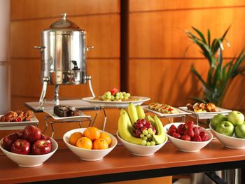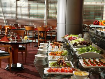 В лобби круглосуточно работает ресторан, где подают разнообразные безалкогольные напитки, чай, кофе и легкие закуски. В кафе J5 сервируют разнообразный завтрак «шведский стол», а на обед и ужин можно заказать блюда по меню. В баре отеля представлен широкий ассортимент разливного пива, коктейлей и домашних вин.
