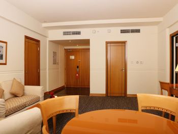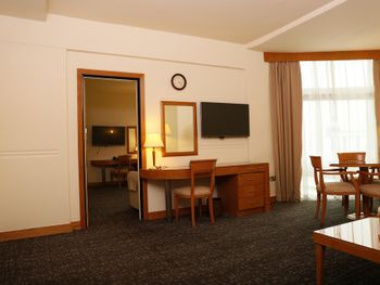 Все было бы отлично, но - при бронировании номера было указано 2 взрослых и ребенок (13). Отель номер подтвердил - а в итоге оказалось что ребенка негде класть... Кровать действительно кингсайз - все поместились - но это явно не то что хотелось и не то что заявлялось отелем и буккингом (жили в делюксе с кроватью кингсайз в котором как раз и предлагается номер для 2 взрослых и ребенка).