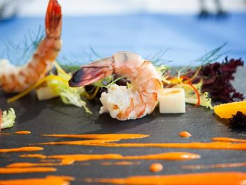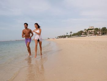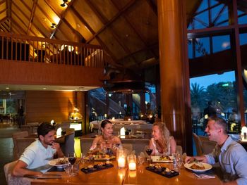 Ежедневно гостям предлагается завтрак «шведский стол», континентальный завтрак или полный английский/ирландский завтрак. При JA The Resort - JA Beach Hotel работает ресторан, где подают блюда индийской кухни, блюда итальянской кухни и блюда средиземноморской кухни. По запросу для гостей приготовят вегетарианские, безлактозные и халяльные блюда.