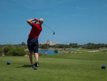 Прекрасное озеленённые место, оазис Красоты в пустыне! Особенно понравились условия для реализации возможности поиграть в гольф во время отдыха , забронировать ти тайм, в любое время пойти попрактиковаться на драйвинг рэйндже. паттинг, , чиппинг, совместить возможное с приятным! 🏌️‍♂️ Прекрасное состояние и уход за гольфовым полем, просто можно позавидовать - именно поэтому я и выбрала данный отель. К тому же предусмотрены условия для привлечения к гольфу детей, есть для этого отдельные гольфовые площадки 🏌️‍♀️ Особенно хочется отметить пляж - удачное, шикарное , красивое место, даже со стоянкой для яхт! Также рекомендую кухню в Спорт. Баре - отличное приготовление блюд!