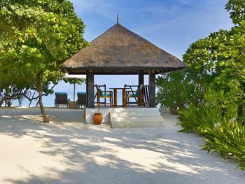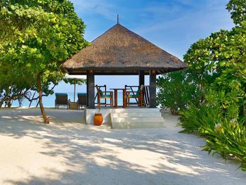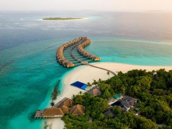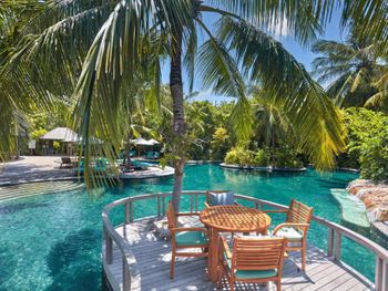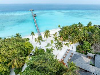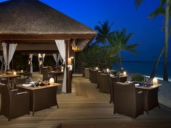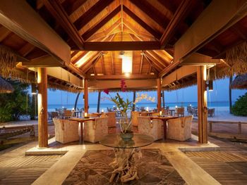 Прекрасный удаленный остров в группе северных атоллов, совершенно замечательный чистейший океан с множеством рыб, есть скаты, черепахи, небольшие акулы. Виллы, рестораны, еда, сервис - замечательны. Всегда есть выбор куда пойти поесть. Можно поехать посмотреть дельфинов, можно заказать волшебный вечерний просмотр кино под звездами на пляже.