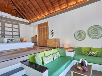 Великолепный отель с очень вежливым персоналом. Сам остров очень зеленый, что нам очень понравилось, так как для нас это было важно. Персонал вежливый и реагирует на каждую просьбу. На вилле прибираются два раза в день, что тоже немаловажно. По еде не скажу, что супер, но вполне вкусно, особенно в рыбном ресторане. Вообще на острове несколько ресторанов, есть лаунж, великолепный новый спортзал, по утрам бесплатная йога. Закаты нереальные конечно там, но стоит приходить пораньше на них, чтобы занять лучшие места. Сам остров далеко, но к этому мы были готовы и только порадовались полету на гидроплане с прекрасными видами на острова. Водных развлечений хватает на любой вкус. Если повезет, то можно рядом с отелем поплавать с черепахами (нам повезло). Спа также великолепен, массаж нас очень порадовал, но стоит записываться заранее, так как люди бронируют практически сразу по заезду, чтобы была скидка, мы же не стали сразу делать бронь и удобного времени для нас не оказалось на несколько дней вперед, но в итоге нам все равно все понравилось.