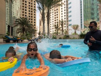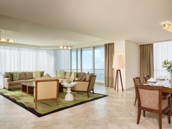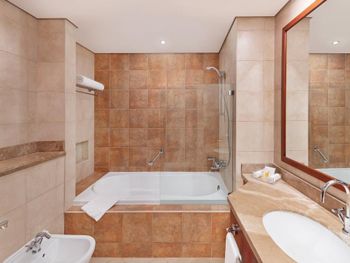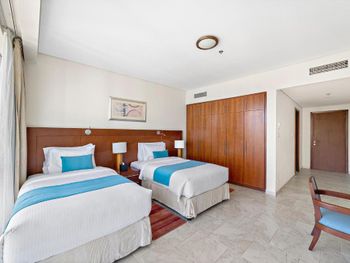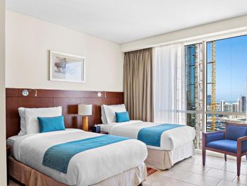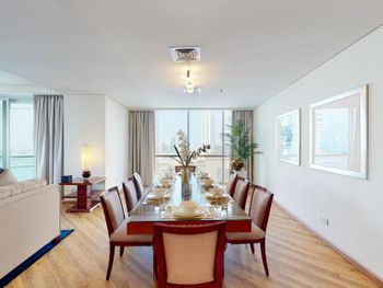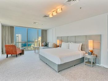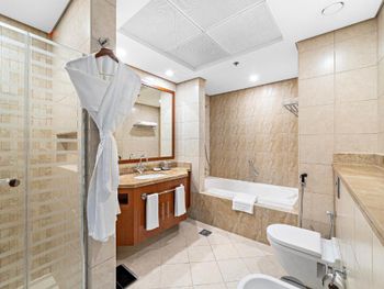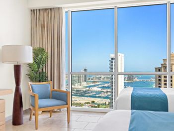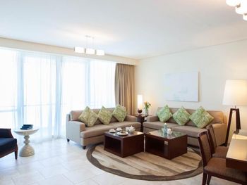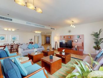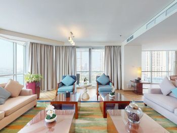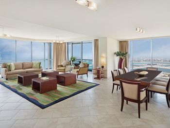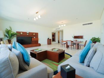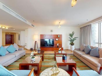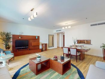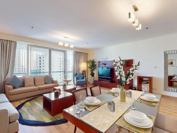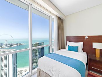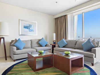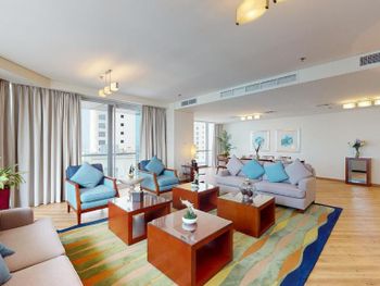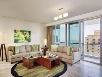 Рядом всё что нужно для комфортного проживания, пляж, рестораны, супермаркеты, Марина молл. Нам сделали бесплатный апгрейд номера и вместо оплаченного 2 bedroom, дали огромный 3 bedroom, с видом на улицу the walk и море. Завтраки вкусные и разнообразные. 2 бассейна с джакузи были чистыми, вода в них тёплая. Полотенца с бассейна можно брать с собой на пляж.