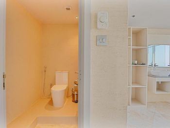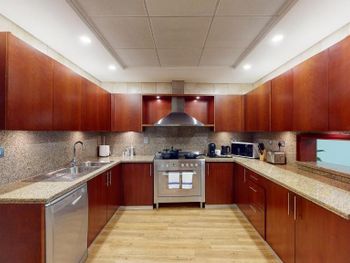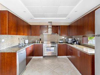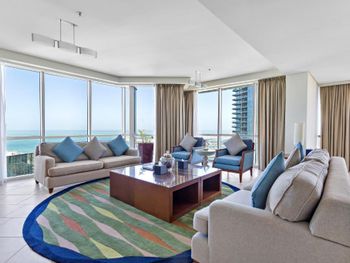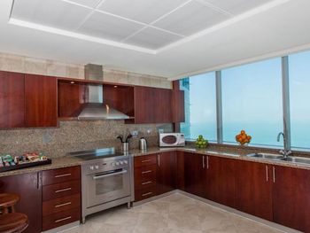 Большая квартира, на кухне посудомойка, стиральная машина с сушилкой, посуда, но ни капусул для посудомойки, ни для стиралки нет, я знала это, привезла свои. Офигенный вид из окон. Мы жили на 42 этаже. Мягкие кровати, постельное белье, 4 туалета в номере! Каждый день убираются, идеально чисто, ставят 4 бутолочки воды. Отличная шумоизоляция. Очень круто! Отель в 5 минутах от пляжа, рядом старбакс рестораны мороженое