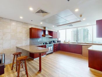 Сам комплекс 50 этажей, в бассейном, СПА и лаунж зоной на 42 этаже. Внизу продуктовый мини маркет, до пляжа минута. Сам район спокойный, европейский, очень комфортные прогулочные зоны, великолепные рестораны на любой вкус.