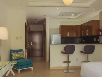 На самом деле это хостел, c номером по типу квартиры-студии. Расположение ужасное, находится в переулках между стройками. На такси пол часа стояли не могли выехать при выезде с отеля. Номер был грязный, на стене была то ли краска, то ли чья-то кровь, , белье несвежее, все в пятнах, ванная очень маленькая не развернуться. Словом тихий ужас, никому не посоветую.