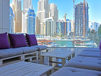 У нас вид был не на Марину, но на этаже нашем был уютный балкончик со столиком с красивым видом на Марину. И на других этажах , а на верху : бассейн и террасы с видами.