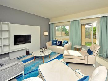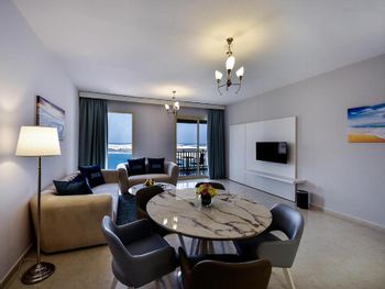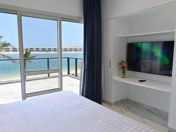 Номер просторный (у нас были апартаменты с одной спальней, два санузла, ванна, два телевизора). Большой балкон. Мебель и вся обстановка практически новые. Есть своя кухня с плитой, духовкой и посудой, большим холодильником, микроволновкой, чайником, тостером, - всё отлично функционирует. У апартаментов есть свой пляж, до которого возят на трансфере или туда можно неспешно дойти за 20 минут. Рекомендуем брать апартаменты с видом на лагуну и море.