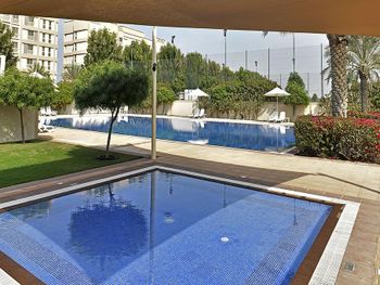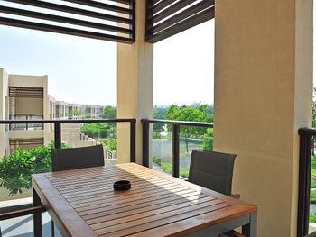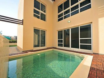 Вид из окна не на сад, как обещано, а на небольшой бассейн и довольно шумное шоссе. Четыре пальмы - не сад. Кухня есть, но полностью отсутствует бытовая химия. "Ершика" нет в туалете - тоже как-то не очень... Район пока пустой. Кафе, магазины, развлекухи ниже среднего. Корме пляжа рядом пока делать нечего. Но у нас и задачи были другие)))