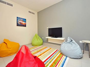 Апартаменты были большие 140 м2, это на самом деле так. Квартира 2 комнатная, 3 санузла. Уборка каждый день. Все было просто отлично. По сравнению с Дубаем, не взяли депозит при заезде вообще. Налоги в пять раз меньше чем в Дубае. Шикарная набережная. Бесплатные городские корты для большого тенниса. Играли с женой каждый день. Все чисто и красиво. Новый курорт. Мы были с двумя детьми, 4 месяца и два годика. В отеле предоставили две детские кроватки. Есть детская площадка для детей и великолепный бассейн. Спасибо отелю.
