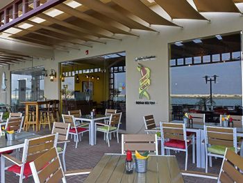 У отеля есть частный пляж с зонтиками и лежаками, куда гостей отвозят и забирают по расписанию. Рядом с отелем много кафешек и есть небольшой магазинчик. По набережной лагуны можно прогуляться. У нас был номер съют. В нем большой холодильник, плита, посудомойка и стиральная машина. Отличные гели-шампуни.