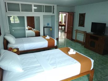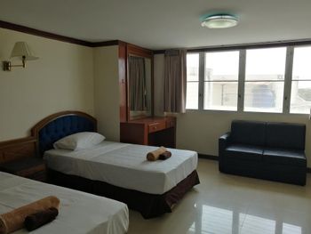Район расположения отеля очень тихий, но не глухой, мотобайки почти не носятся. Администрация внимательна к клиентам, по любому вопросу, помогут чем смогут (если не забудут). В отеле очень чисто, за этим следят. Номер хорошо оборудован. Вблизи есть вечерний базар (дороговат), ультра-бюджетная столовка для местных и недорогие кафе для туристов. Массажки тоже рядом. В районе много русско-ориентированных турбюро и ресторанов. До пляжа 5 минут пешком, на нём есть шезлонги с зонтами по 100 бат, но можно бесплатно и на песочке под деревьями. Если любите фрукты, то ловите пикапы, которые ползут и предлагают к продаже ананасы, манго и пр. по 100 бат за 3кг. В отеле дают питьевую воду, ежедневно по литру на человека, но если мало, то рядом есть автоматы по продаже питьевой воды в вашу тару, 1 бат за 1 литр.