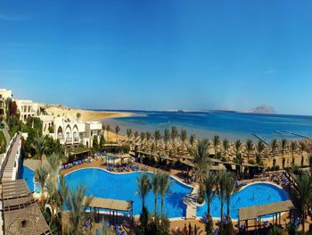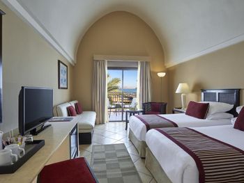 Мы приехали отпраздновать день рождения, но... слава богу, что быстро нашли квартиру) Самолет прилетел в 3 утра, в отеле мы были в начале пятого. Менеджер сказал, что можно заселиться сразу, оплатив цену за ночь, то есть 120$. Погуляв по пляжу, мы пошли спать в лобби. В 9 утра, видимо ресепшен получил по башке, за спящих туристов в лобби, нам дали номер (отель полупустой, как и все в Египте). Нам надели браслеты и мы пошли на завтрак, для меня это не завтрак, так, чтобы не умереть с голоду, все исскуственное, жесть(. 99% гостей - пакетные туристы из Украины. За номер спасибо, мы бронировали с видом на море и у нас был самый шикарный вариант! Пляж в первый день понравился, но когда мы уехали, взяли машину и начали путешествовать, поняли, что пляж полное Г. А ТЕПЕРЬ САМОЕ ГЛАВНОЕ ДЛЯ ТУРИСТОВ, КОТОРЫЕ БРОНИРУЮТ ЧЕРЕЗ БУКИНГ!!! К той цене. которую вы видите на букинге, прибавляйте сразу 27-30%, так в любом отеле. Плюс имейте ввиду, БРОНИ С БУКИНГА ПО СИСТЕМЕ "ВСЕ ВКЛЮЧЕНО" У НИХ НАЗЫВАЕТСЯ "SOFT", ТО ЕСТЬ НИКАКОГО АЛКОГОЛЯ, ТОЛЬКО БЕЗАЛКОГОЛЬНЫЕ НАПИТКИ, ВАМ ВЫДАДУТ БРАСЛЕТЫ ДРУГО ЦВЕТА, НЕ ТАКИЕ КАК У ХОХЛОВ.