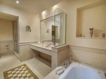 Номер со старым ремонтом, лейка душа сломана, грязные с пятнами полотенца, жесткая кровать, старая мебель. Не соответствует 5звездочному сервису. Не было геля, шампуня, просили донести. Еда неочень вкусная, выбор маленький, мяса, рыбы практически нет. Много соусов и овощей. Из фруктов апельсин, грейпфрут и дыня горькая.